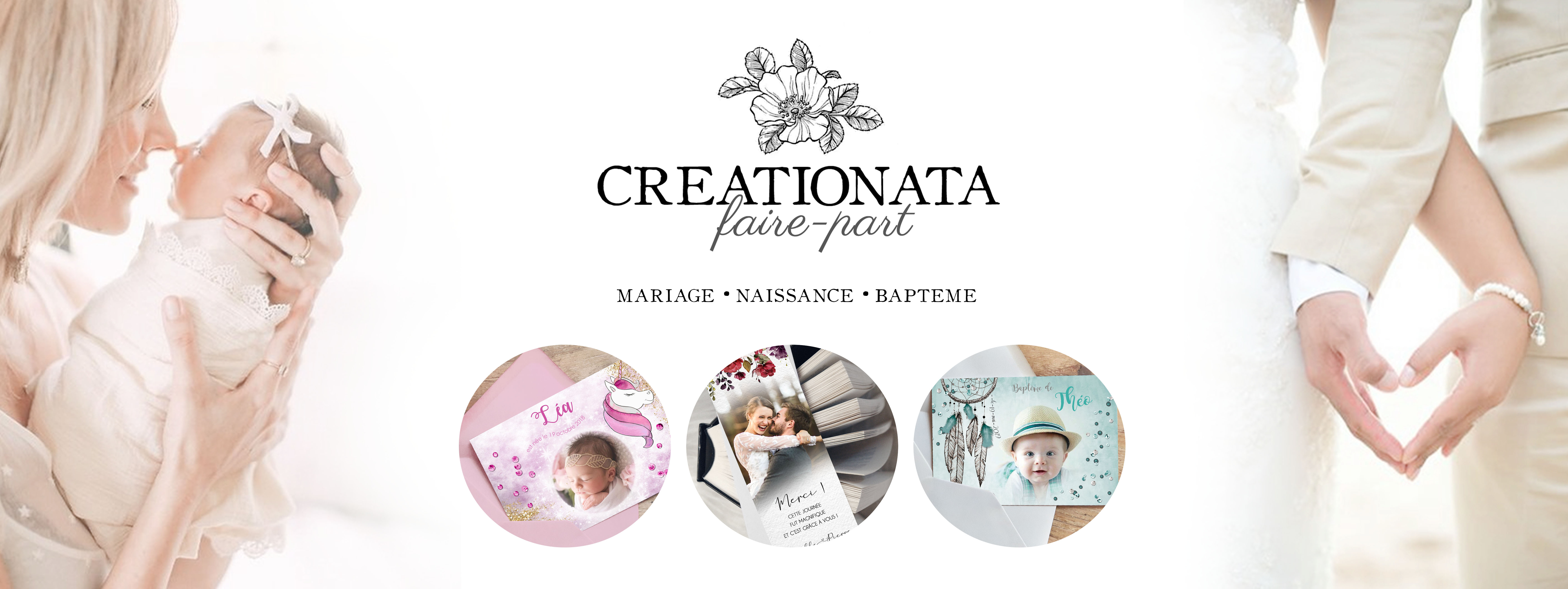 J'ai fait appel à creationata faire part à plusieurs reprises : mariage, naissance de mes 3 enfants, baptême, et dernièrement pour un anniversaire. Je suis ravie et je recommande cette entreprise pour son sérieux, sa réactivité, et la qualité des produits proposés.